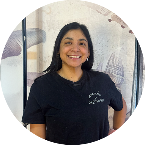 De profesión enfermera, desde hace dos años se dedica a ser instructora de Pilates. Se certificó en MK Pilates, continuó sus estudios y actualmente cursa Polestar Pilates, un curso profesional internacional de Reformer, Wall Unit, Chair, Cadillac y Mat. Sus clases se caracterizan por ser amenas, alegres y llenas de energía positiva. Por sus conocimientos de anatomía y mecánica corporal, su enfoque es que logres mayor conciencia corporal, fuerza y movilidad, asegurándose de que alcances tus objetivos.